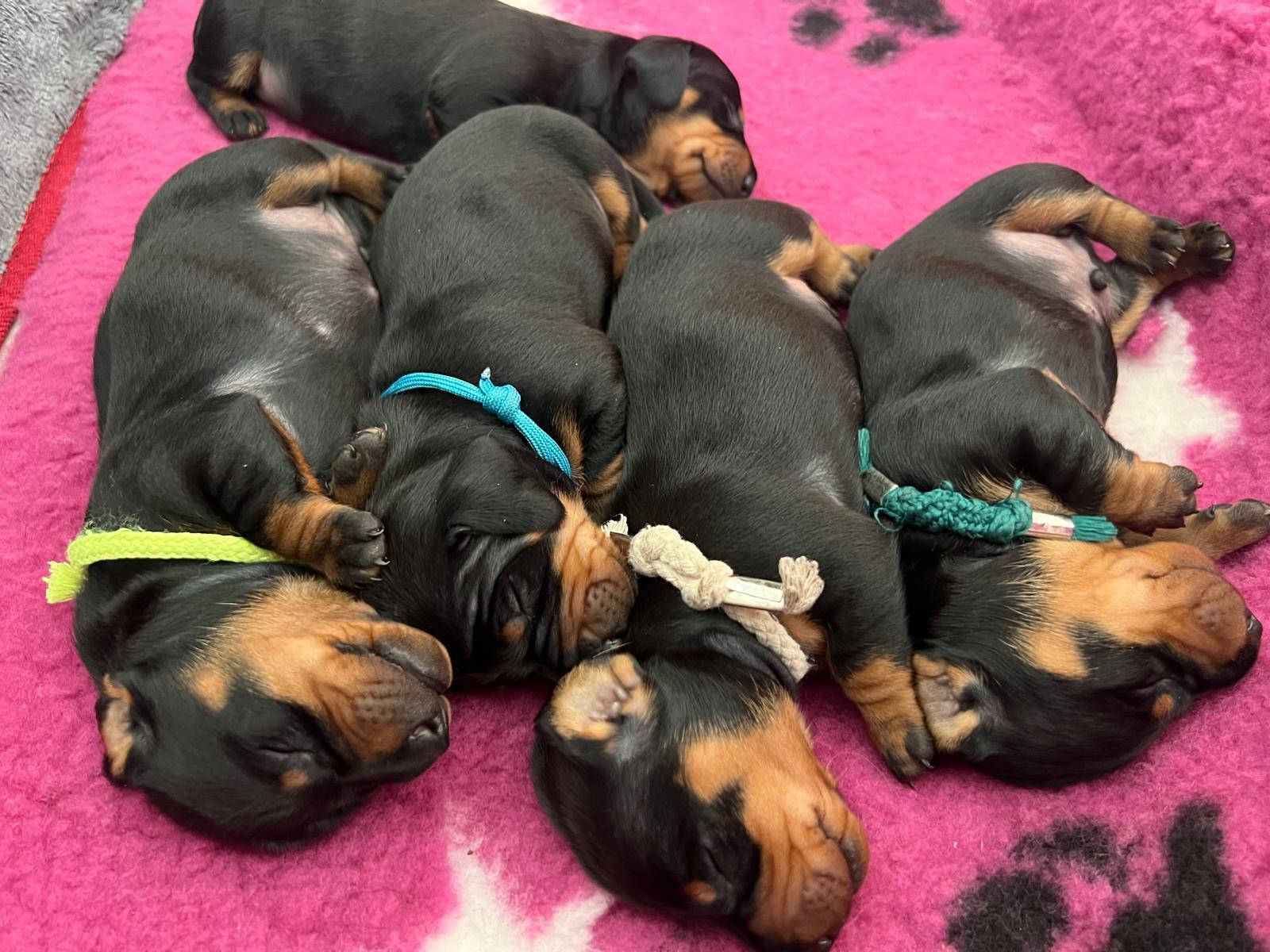 Fenka z naší chovatelské stanice, černopálená sestra naší Emily, porodila 4. března pět krásných štěňátek. Jednu fenku a čtyři psy, všechny černé s pálením. Otcem je červený Urbi et Orbi Canis Formula. Jedná se o vrh "A" v chovatelské stanici "od Červeného kříže", chovatelkou je paní Marie Olšanská (tel. 723 919 186). Gratulujeme!